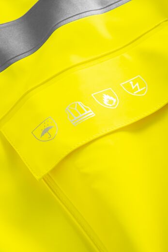 Lyngsoe Flame Retardant Hi-Vis Rain Jacket in heavy PU/PVCquality50% Polyester, 25% Polyurethane, 25% PVC, 350 g/m2