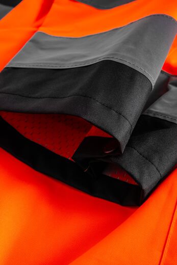 Certified workwear for protection of High-Visibility Protective clothing certified according to EN ISO 20471, which specifies the requirements for High-Visibility. The combination of fluorescent material with reflective tape should provide the visibility of the user in all lighting conditions, both in daylight and under the illumination of headlights in the dark. The number (x) next to the pictogram indicates which class is related to the surface of both fluorescent and reflective material. The classification goes from 1-3, where 3 is the highest.