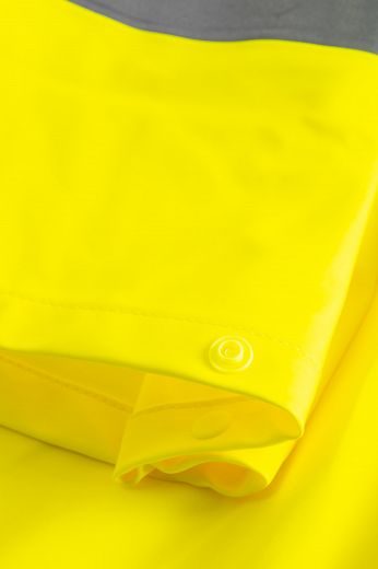 Certified workwear for protection of High-Visibility Protective clothing certified according to EN ISO 20471, which specifies the requirements for High-Visibility. The combination of fluorescent material with reflective tape should provide the visibility of the user in all lighting conditions, both in daylight and under the illumination of headlights in the dark. The number (x) next to the pictogram indicates which class is related to the surface of both fluorescent and reflective material. The classification goes from 1-3, where 3 is the highest.