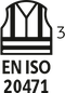 Certified workwear for protection of High-Visibility Protective clothing certified according to EN ISO 20471, which specifies the requirements for High-Visibility. The combination of fluorescent material with reflective tape should provide the visibility of the user in all lighting conditions, both in daylight and under the illumination of headlights in the dark. The number (x) next to the pictogram indicates which class is related to the surface of both fluorescent and reflective material. The classification goes from 1-3, where 3 is the highest.