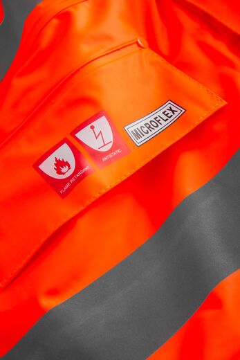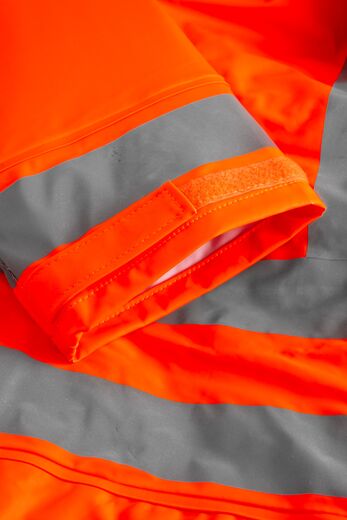 Certified workwear for protection of High-Visibility Protective clothing certified according to EN ISO 20471, which specifies the requirements for High-Visibility. The combination of fluorescent material with reflective tape should provide the visibility of the user in all lighting conditions, both in daylight and under the illumination of headlights in the dark. The number (x) next to the pictogram indicates which class is related to the surface of both fluorescent and reflective material. The classification goes from 1-3, where 3 is the highest.