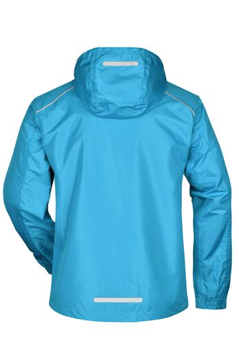 • Let regnjakke med justerbar hætte.• Vind- og vandtæt (3000 mm).• Åndbar (1000 g/m2/24t).• Tapede sømme.• Gennemgåeden lynlås i kontrast farve.• 2 lynlåslommer foran, 1 inderlomme.• Refleks detaljer foran, på hætte og bagpå.• Yderside = 100% polyester / Inderside = 100% polyester
