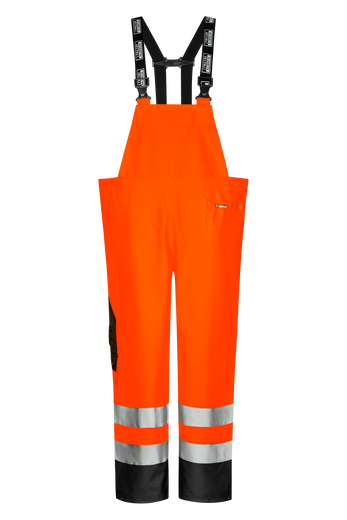 Lyngsøe Hi-Vis regnoverall i kraftig brandhæmmendePU/PVC kvalitet50% Polyester, 25% Polyurethan, 25% PVC, 350 g/m2