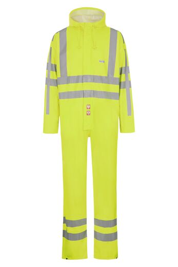 Regndragt Lyngsøe Hi-Vis i brandhæmmende PU kvalitet, gul FR-LR57-RWS