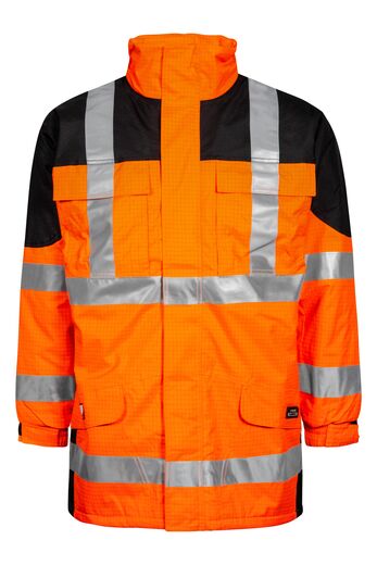 Lyngsøe Hi-Vis vinterregnjakke i kraftig brandhæmmende rivfast kvalitet med quiltet foer, orange FR-LR11411