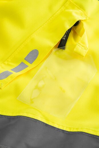 Certificeret arbejdstøj til beskyttelse af høj synlighed Beskyttelsesbeklædning certificeret i henhold til EN ISO 20471, der specificerer kravene til høj synlighed. Kombinationen af fluorescerende materiale med reflekterende tape skal give synligheden af brugeren i alle lysforhold, såvel i dagslys som under belysning af forlygter i mørke. Tallet (x) ud for piktogrammet indikerer hvilken klasse, der er relateret til overfladen af både fluorescerende og det reflekterende materiale. Klassificeringen går fra 1-3, hvor 3 er det højeste.