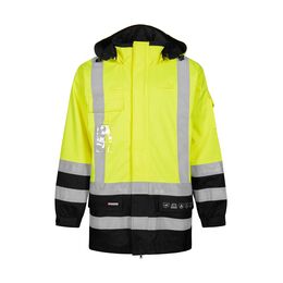 Certificeret arbejdstøj til beskyttelse mod regn Beskyttelsesbeklædning certificeret i henhold til EN 343, beskyttelse mod nedbør som regn eller sne, tåge og jord fugtighed. Beklædningen og sømmene er testet for vandtætheden (x) men også vanddampgennemtrængelighed, også kaldet åndbarhed (y). Disse værdier går fra 1-3, hvor 3 er det højeste.