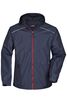 • Let regnjakke med justerbar hætte.• Vind- og vandtæt (3000 mm).• Åndbar (1000 g/m2/24t).• Tapede sømme.• Gennemgåeden lynlås i kontrast farve.• 2 lynlåslommer foran, 1 inderlomme.• Refleks detaljer foran, på hætte og bagpå.• Yderside = 100% polyester / Inderside = 100% polyester