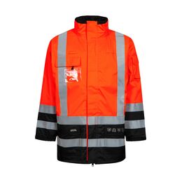 Certificeret arbejdstøj til beskyttelse af høj synlighed Beskyttelsesbeklædning certificeret i henhold til EN ISO 20471, der specificerer kravene til høj synlighed. Kombinationen af fluorescerende materiale med reflekterende tape skal give synligheden af brugeren i alle lysforhold, såvel i dagslys som under belysning af forlygter i mørke. Tallet (x) ud for piktogrammet indikerer hvilken klasse, der er relateret til overfladen af både fluorescerende og det reflekterende materiale. Klassificeringen går fra 1-3, hvor 3 er det højeste.