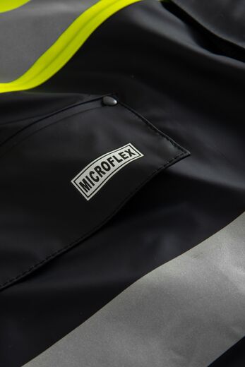 Certificeret arbejdstøj til beskyttelse mod regn Beskyttelsesbeklædning certificeret i henhold til EN 343, beskyttelse mod nedbør som regn eller sne, tåge og jord fugtighed. Beklædningen og sømmene er testet for vandtætheden (x) men også vanddampgennemtrængelighed, også kaldet åndbarhed (y). Disse værdier går fra 1-3, hvor 3 er det højeste.