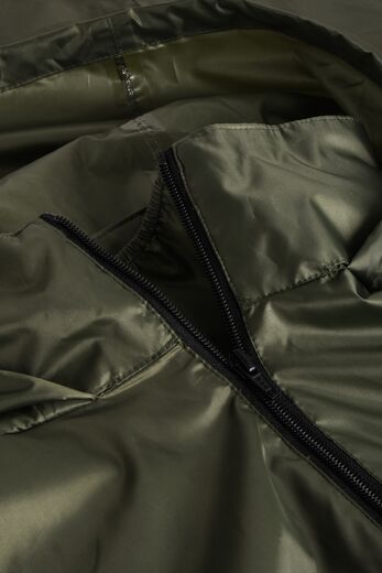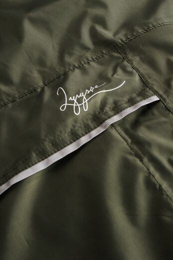 • Fast hætte med snøre• Side lukning med trykknapper• En front lomme• Taljerem• Foldes ned i frontlommen for opbevaring / muligt at bære den på tajlen