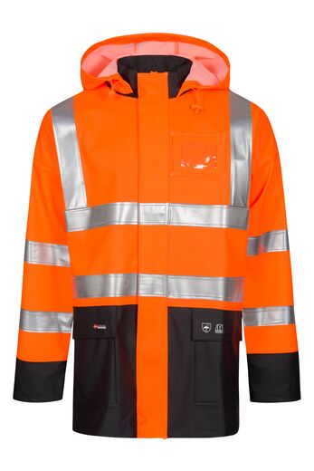 Lyngsøe Hi-Vis regnjakke i kraftig PU/PVC kvalitet50% Polyester, 25% Polyurethan, 25% PVC, 350 g/m2