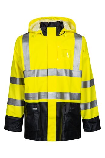 Lyngsøe Hi-Vis regnjakke i kraftig PU/PVC kvalitet50% Polyester, 25% Polyurethan, 25% PVC, 350 g/m2