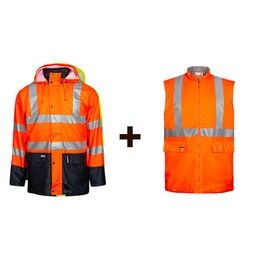 • Let regnjakke med justerbar hætte.• Vind- og vandtæt (3000 mm).• Åndbar (1000 g/m2/24t).• Tapede sømme.• Gennemgåeden lynlås i kontrast farve.• 2 lynlåslommer foran, 1 inderlomme.• Refleks detaljer foran, på hætte og bagpå.• Let faconsyet.• Yderside = 100% polyester / Inderside = 100% polyester