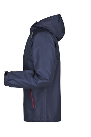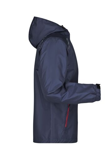 • Let regnjakke med justerbar hætte.• Vind- og vandtæt (3000 mm).• Åndbar (1000 g/m2/24t).• Tapede sømme.• Gennemgåeden lynlås i kontrast farve.• 2 lynlåslommer foran, 1 inderlomme.• Refleks detaljer foran, på hætte og bagpå.• Yderside = 100% polyester / Inderside = 100% polyester