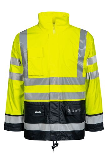 Lyngsøe Hi-Vis vinterregnjakke i brandhæmmende PU kvalitetmed aftageligt quiltet foer50% Polyester, 50% Polyurethan, 210 g/m2Foer: FR Quiltet bomuldsfoer med polyester fyld