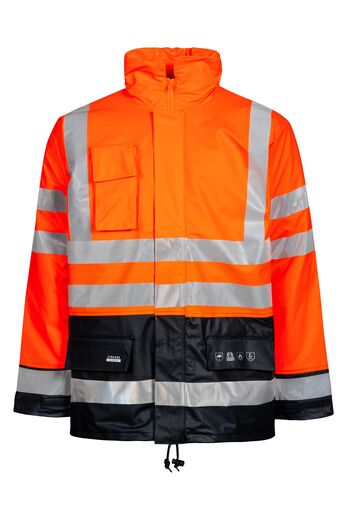 Lyngsøe Hi-Vis vinterregnjakke i brandhæmmende PU kvalitetmed aftageligt quiltet foer50% Polyester, 50% Polyurethan, 210 g/m2Foer: FR Quiltet bomuldsfoer med polyester fyld