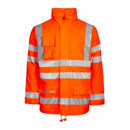 Lyngsøe Hi-Vis vinterregnjakke i brandhæmmende PU kvalitet med aftageligt quiltet foer, orange FR-LR32