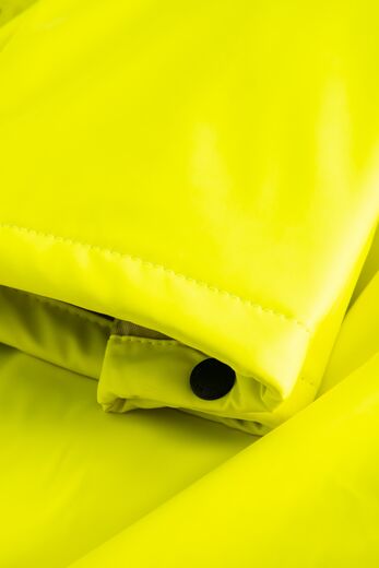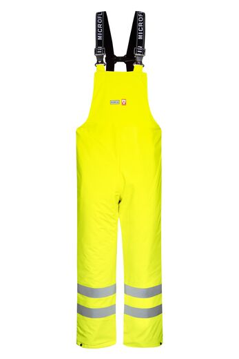Lyngsøe Hi-Vis vinter regnoverall i brandhæmmendePU kvalitet med foer50% Polyester, 50% Polyurethan, 210 g/m2Foer: FR Quiltet bomuldsfoer med polyester fyld